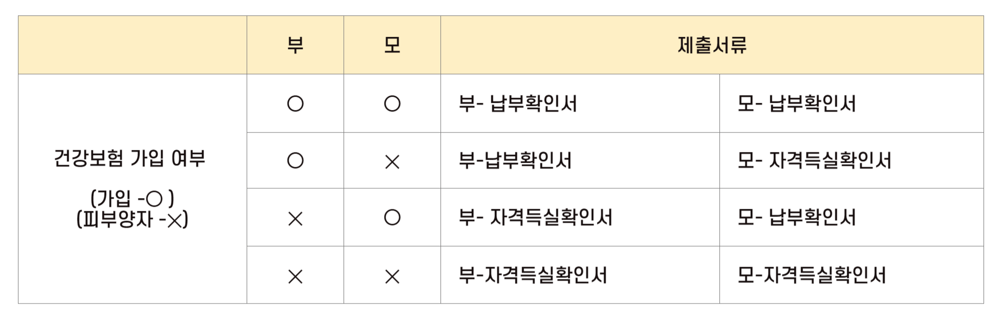 - 건강보험료 면제의 경우, 기초생활수급 또는 차상위계층 등 증빙서류 제출