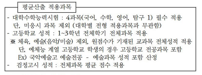 - 검정고시성적은 전체 과목 평균 점수를 적용함