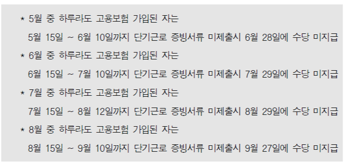 * 주 30시간 이하 또는 3개월 이하 단기근로자의 경우는 신청 가능 (단, 증빙필요)
