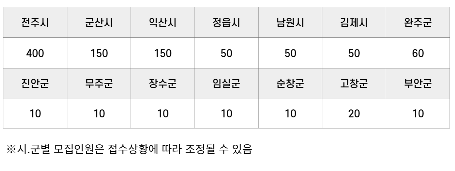 -시군별 인원 배정, 주민등록상 해당 시군으로 신청하면 됨