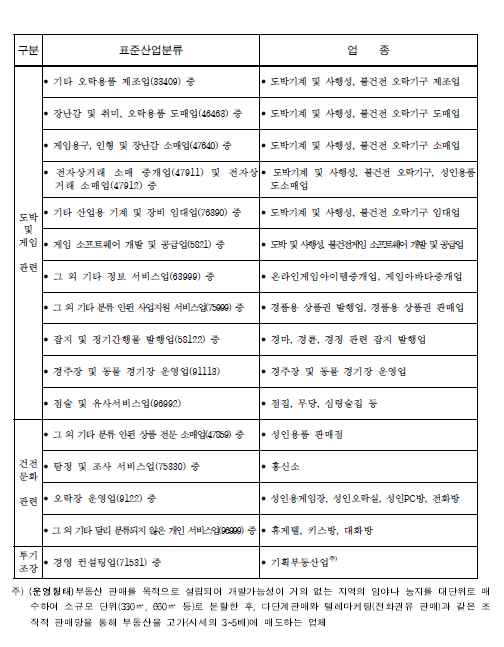 ○ 도박, 유흥 등 기타 국민보건 및 건전문화에 반하거나 사치향락적 소비 및 투기조장업종 종사자