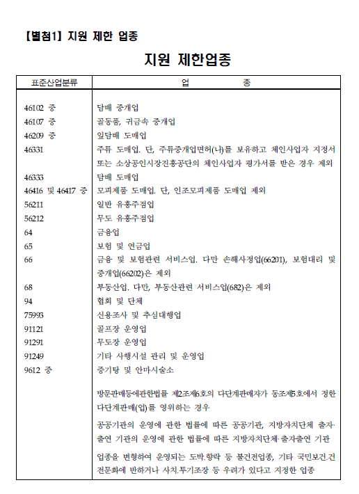 [별첨 1]의 제외대상 업종의 사업체 및 단체 등에 재직 중인 자