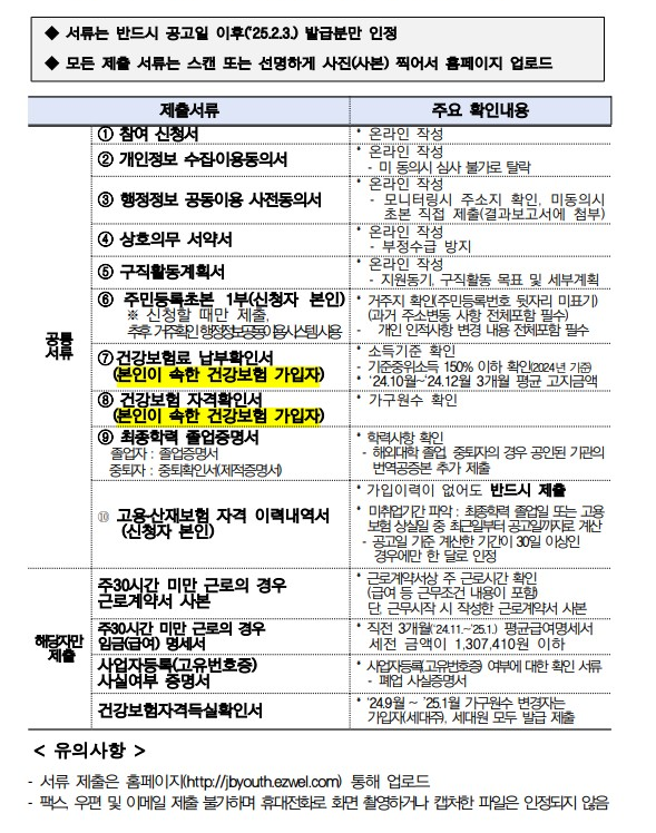 - 서류는 반드시 공고일 이후 (25.2.3.) 발급분만 인정됨